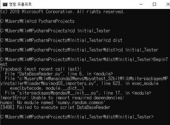 제 아무리 파이참과 같은 개발툴에서 잘 만들었다고 해도, 실행을 하면서 언제나 에러는 발생할 수 있습니다. 그래서 cmd라고 명령프롬프트 창에서 일일히 찾아가서 실행파일을 실행시키면, 무슨무슨 에러가 나왔는지 알아볼 수 있습니다. 이 정보를 바탕으로 개발에는 없는데, 배포판을 만들면서 발생한 에러를 하나하나 잡아낼 수 있습니다.