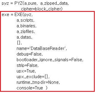 다음으로 언급을 하고 넘어가야 하는 spec파일의 부분이라고 하면, 바로 이 console이라고 할 수 있는데, 이 부분은 cmd와 같은 실행창을 실행 시킬 것인지 아닌지를 결정합니다. 처음에는 별것 아닌 것이라고 생각했지만, 배포용으로 빌드를 하였을 경우에는 어떤 에러가 생길 지 모르기 때문에, 이에 대해서 한번 기억했다가 에러를 잡아내는데 사용하면 좋으리라 생각이 됩니다.