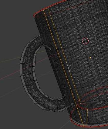 이번에는 이렇게 컵의 손잡이 부분에도 한번 mark steam을 적용해 주는 선을 선택해서 만들어 주는 것으로 해 보았습니다.