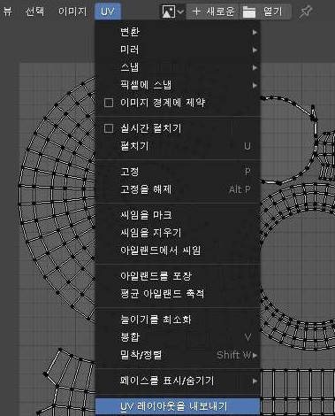 일단 위 스크린샷에서 볼 수 있는 것처럼 UV메뉴에 있는 UV 레이아웃을 내보내기라는 메뉴가 있습니다. 이 메뉴를 눌러서 한번 내 보내도록 합니다. 내보내면, 그림파일의 형식으로 저장을 할 수 있는데, 그 상태 그대로 저장이 가능합니다. 이제 여기까지의 작업이 제대로 된 것인지 아닌지 아직은 모르지만, 일단 다음 작업에 들어가 보고자 합니다.