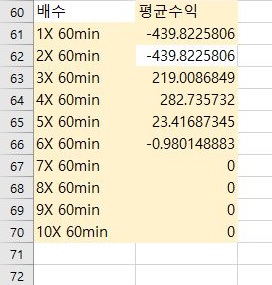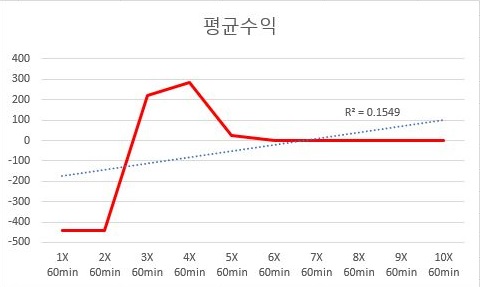 잊에 마지막으로 60분봉에 대해서 한번 평균수익과 비교를 해 보도록 합니다. 이 결과에서는 무엇이 나오려는지 일단 알아 보도록 합니다.