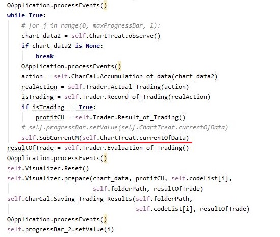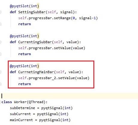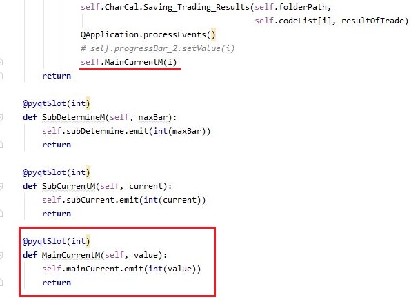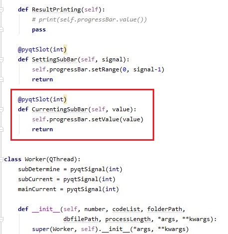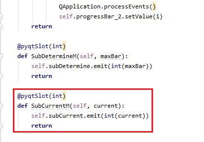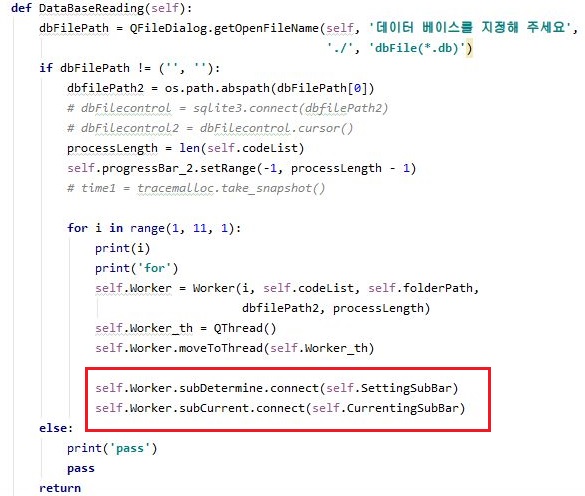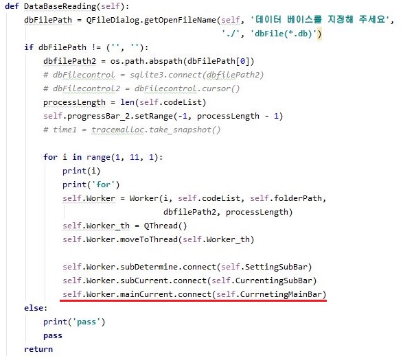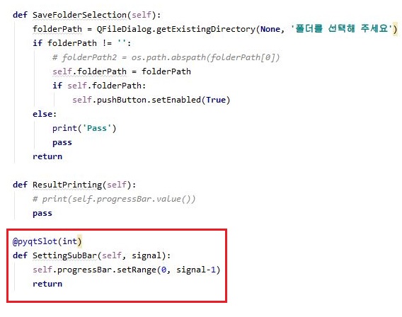그리고 나서 당연하다면 당연하게도 원래는 프로그레스 바를 가지고 작업을 하던 곳에서 원래 코드를 주석처리하고, 대신 신호를 발사하기 위한 메서드를 설치해 주도록 합니다.