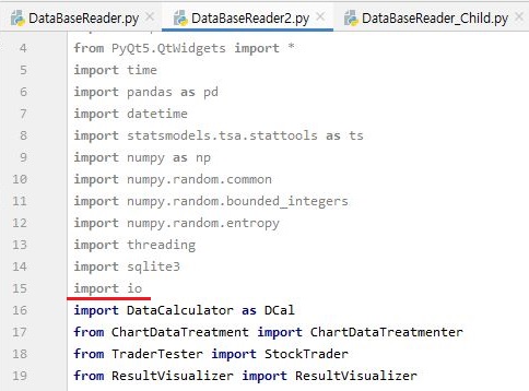 다음으로는 부모 프로세스가 될 py파일에 와서 io모듈을 가지고 오도록 합니다. 저는 정확하게는 알지는 못하지만, 이게 부모프로세스와 자식 프로세스가 의사소통을 하는 통로가 될 것이라고 생각합니다.