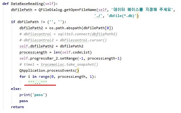 그리고 나서 기존에 하는 것처럼 for문 아래에 있는 데이터 베이스에서 하나하나 데이터를 읽어오는 문장을 그냥 주석처리 하도록 합니다.