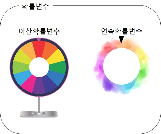 대표적으로 룰렛을 돌리게 되는데, 룰렛을 실제로 돌리기 전에 그 결과를 알 수는 없고, 돌리고 나서야 결과를 확인할 수 있기 때문에, 룰렛에 있는 모든 칸들은 확률변수라고 할 수 있습니다. 그런데 이 확률변수도 위 스크린샷과 같이 2가지 종류로 나뉘게 됩니다. 우선 이산활률분포의 경우에는, 위 그림에서 묘사가 된 것과 같이, 어느색에 멈추게 될지 경계가 뚜렷한 - 경우의 수가 한정된 - 유한하기 때문에 이렇게 불립니다.