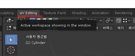 그리고 나서 다시한번 윈도우를 UV Editing으로 만들어 보도록 해야 겠습니다. 여기서 이제 다음의 UV 맵을 조종하는 작업에 들어가야 합니다.