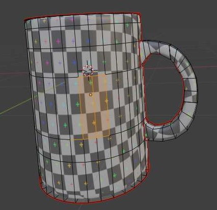 위 스크린샷처럼 UV edit에서 나와 있는 머그컵의 표면도 UV grid로 바뀌는 것을 확인할 수 있기는 있었습니다. 그런데 문제는 여기서 한번 한개의 면만 클릭을 하고.......