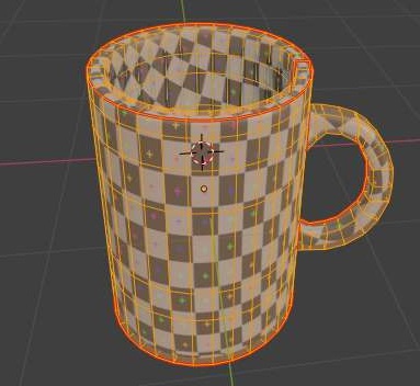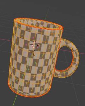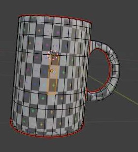 위 스크린샷처럼 UV edit에서 나와 있는 머그컵의 표면도 UV grid로 바뀌는 것을 확인할 수 있기는 있었습니다. 그런데 문제는 여기서 한번 한개의 면만 클릭을 하고.......