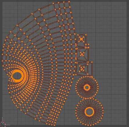 일단 전체적인 UV 맵의 모습입니다. 이렇게 해서 위 스크린샷에서 볼 수 있는 것처럼 펼쳐졌다고 하기에는 아직은 무언가 많이 부족합니다.