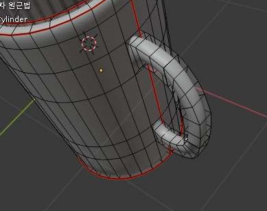 먼저 위 스크린샷과 같이 컵 손잡이와 원통이 부딪치는 부분을 한번 손 봐주도록 합니다. 이 부분에 씨임을 씌우도록 합니다.