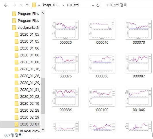 그리고 나서 위 스크린샷에서 보이는 것처럼 10배를 해주는 조건에서도 그렇게 큰 차이없이 이번에는 지난번과 같은 에러가 발생하지 않고서 제대로 결과파일이 807개 나오는 것을 확인할 수 있었습니다. 이렇게 해서, 이제 어떻게 초기 테스트를 하는 평균과 표준편차 조건은 끝이 났으며, 이제 남은 것은 다른 조건인 RSI를 적용해 보는 것과, 그리고 평균과 표준편차 조건을 정리하는 것이라고 할 수 있습니다.