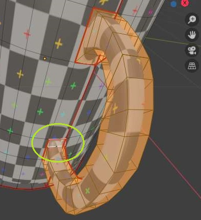 이제 다음 부분을 UV 맵에서 선택한 다음에, 여기서 나오는 것들을 가지고서 머그컵 손잡이의 어느 부분이 선택이 되는지를 살펴 보도록 합니다.