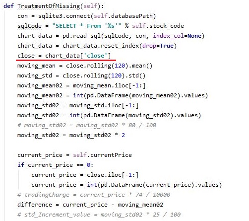 먼저 시작부인데, 여기서 가장 중요한 것은 input() 이라는 함수입니다. 이 함수가 있어야 subprocess에서 communicate()함수로 입력한 내용을 넣어줄 수 있기 때문입니다. 그리고 나서 기존에 만들어 주었던 average_returning.py와 다른점이 무엇이냐고 하면, 일단 미체결 수량에 대한 고려를 하는 missingQuantity와 missingTrade라는 변수등이 추가가 되었고, 그 다음에는 TreatmentOfMissing()이라는 함수가 추가된 것 입니다.