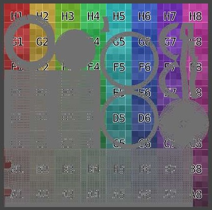 이렇게 해서 기존의 UV 격자가 그러져 있던 UV 맵에서, 컬러 격자로 일단 색상을 바꾸는 데는 성공했습니다. 그리고 나서 이제 우측의 화면을 보면......