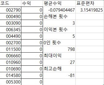 그리고 나서 3배수 이상부터는 표준편차가 거의 0에 가까운 것을 확인할 수 있습니다. 이걸 역으로 말하면, 3배수 이상부터는 더 이상은 변동도 없이 이익도 없는 상태 - 거래가 거의 일어나지 않는 다는 것을 알 수 있었습니다. 일단 이렇게 해서는 아직은 확실한 결론을 낼 수는 없었습니다.