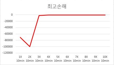 다만 손해의 경우에는, 3배수를 향해서 가면 갈수록, 더 줄어든다 = 이익이 줄어드는 만큼 손해보는 것도 줄어드는 것을 확인할 수 있었습니다.