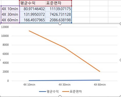 그리고 4배수에 이르러서는 데이터 베이스를 비교하는 것이 거의 의미가 없을 수준으로 수익이 바닥을 기고 있는 것을 확인할 수 있습니다. 이래서야 이걸 활용할 여지가 있는지 의문입니다.