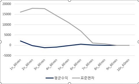 일단 사실상 평균수익을 따져보는 상황에서 이미 1번 조건을 빼고는 그렇게 딱 뿌러지게 좋은 것이 없다는 생각이 듭니다. 2번 조건에서 그나마 바닥을 기는 조건이 나올 뿐입니다.