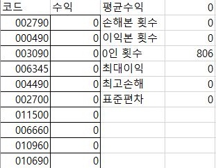 그래도 나머지 데이터를 한번 살펴 보았습니다. 일단 2번 조건 이후에는 손해를 이익보다 더 많은 종목이 보고 있었고, 이후에 5번 종목에서 역전이 다시되나, 이 때 부터는 본격적으로 거래가 전혀 없는 경우가 많아집니다.