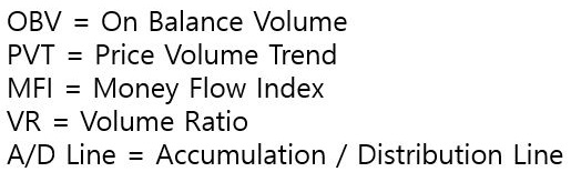 이번 목표는 다른게 아니라 거래량을 기반으로 해서 계산을 할 수 있는 지수들이 있는지 없는지 한번 검사를 해 보았습니다.
