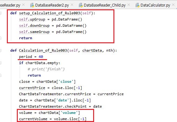 먼저 원래는 다른 py파일에 있는 메서드인데, 여기서 실행을 시켜 주는 이유는, 원래 Calculation_of_Rule003이란 메서드가 있는 클래스의 def __init__()가 작동을 하지 않아서 부득이 이렇게 할 수 밖에 없었습니다. 아마 제가 파이썬을 제대로 배웠으면 그 이유를 알것 같은데, 그게 아니다 보니, 이래저래 애로사항이 많습니다.