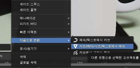 위 스크린샷에서 볼 수 있는 것처럼 일단 다시금 메쉬로 만들어 주는 메뉴를 선택하도록 했습니다. 그런데 이러고도 특별한 소득은 없었습니다.
