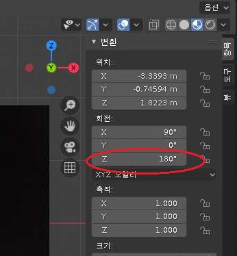일단 위 스크리샷처럼 벡터 그래픽을 가지고 와서, Z축으로 180도 회전을 주도록 합니다. 이렇게 해서 한번 작업이 이루어 지게 됩니다.
