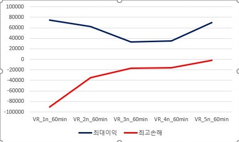 그리고 나서 다음으로 해야 할일로는 위 스크린샷에서 보이는 것처럼 일단 최대로 본 이익과 손해의 최대치를 비교해 봐야 하는데, 일단 여기서는 가장 빡빡한 조건에서 다시 이익의 최대치는 회복을 하였고, 손해는 가장 최저치를 기록한 것을 확인할 수 있었습니다.