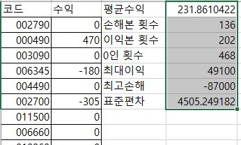 일단 손해를 본 종목의 갯수는 꾸준히 이익을 본 종목의 갯수에 비해서 적은데, 문제는 더 빡빡한 조건으로 가면 갈수록 거래가 없는 종목이 너무 많습니다. 일단 널널한 조건에서 너무 손해본 종목의 갯수가 커지는데, 이것 때문에 널널한 조건에서 더 손해가 커진 것이 아닌가 합니다.