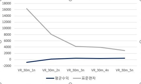 이번에는 2번째로 널널한 조건에서 가장 좋은 평균수익이 나왔으며, 그리고 나서 서서히 줄어드는 것을 볼 수 있습니다. 다만 이렇다고 해도, 너무 수익이 바닥을 기고 있다는 생각이 듭니다.