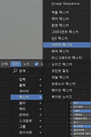 이제 셰이딩 윈도우를 어떻게 열여서, 여기서 이미지 텍스쳐를 위 스크린샷처럼 한번 추가시켜 주도록 합니다. 그리고 나서 하는 일은.......