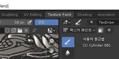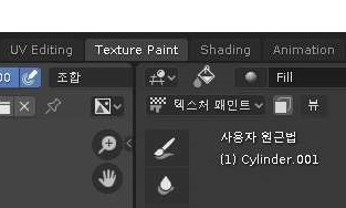 일단 작업을 하기 위해서, 위 스크린샷에서 보이는 것처럼 우선 텍스쳐 페인트라는 윈도우로 한번 옮겨가 보도록 합니다.
