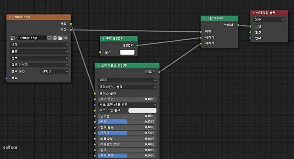 그래서 힘이 많이 들기는 했지만, 아무튼 프랑스어로 된 유튜브 강좌의 자막을 영어로 자동번역하고, 여기서 나온 내용을 가지고서 셰이딩에 들어가서 노드를 연결해 보았습니다.