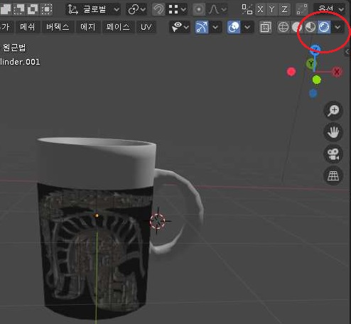 그런데 여기서 문제가 발생했습니다. 일단 제대로 유튜브 강좌에서 블렌더 2.8이 맞는지 아닌지 모르겠는데, 거기서는 렌더링을 보는 모드로 해서 제대로 벡터 그래픽 이미지가 적용이 되었는데.........