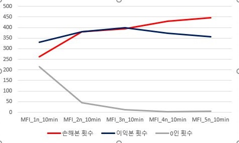 여기서는 가장 빡빡한 조건에서 이익을 손해보다 더 많이 보고는있지만, 그 외에는 거의..... 동일하게 보고 있거나, 손해보는 종목의 갯수가 더 많다는 것을 알 수 있었습니다.