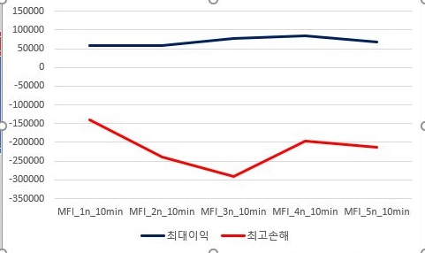 아직 데이터의 분석이 100% 끝난 것이 아니기는 합니다만, 그래도 포스팅을 마냥 미뤄둘 수도 없어서 하는 수 없이 이렇게 하나씩이라도 올려 보고자 합니다. 이번에는 다른게 아니라 VR과 MFI기반으로 해서 나온 결과를 한번 올려 보는데, 그 계산에 들어간 기간이 10개 분봉을 사용해서 나온 결과를 한번 올려보고자 합니다.