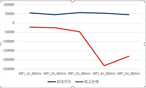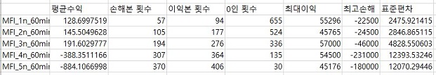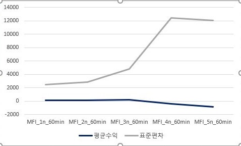 다음으로 MFI지수를 기반으로 해서 나온 결과를 일단 도표로 정리해 보았습니다. 여기서도 어느정도 결과가 좋지 않을 것으로 보이는데, 일단 그래프를 그리도록 합니다.