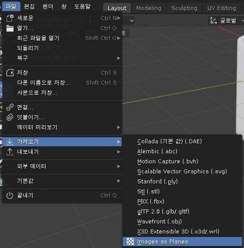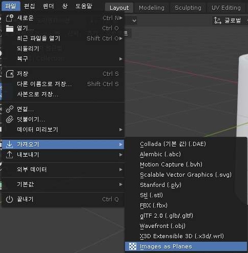 먼저 해야 하는 일로는 이전에 했던 설정으로 이미지를 평면인 플레인으로 가져오기가 되는지 여부 부터 일단 알아 보도록 합니다.