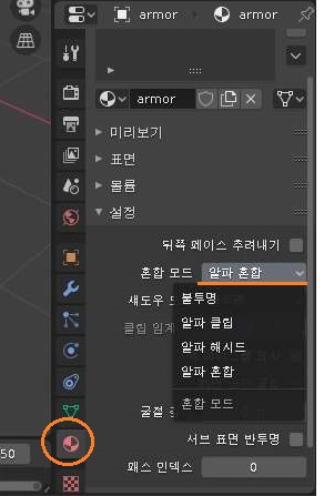 그리고 나서 확인할 것이 있는데, 일단 텍스쳐 프로퍼티 항목으로 가서, 일단 혼합모드에 알파혼합이라고 되어 있는지 아닌지를 확인하러 갑니다. 일단 이게 알파혼합이 되어 있어야 배경이 투명하게 나온다고 합니다.