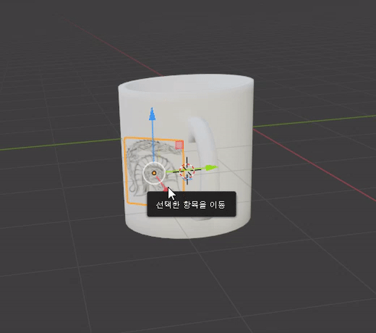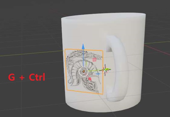 일단 위 스크린샷처럼 먼저 G키를 눌러서 움직이도록 하는데, 그 이후에 Ctrl키를 눌러서 움직이면 머그컵의 표면에 따라서 움직이는 현상을 볼 수 있게 됩니다.