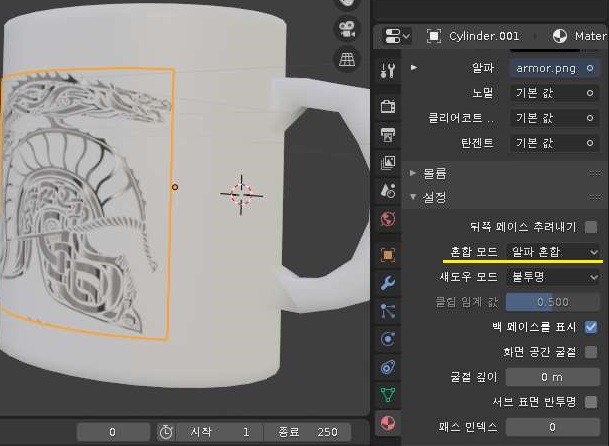 이렇게해서 위 스크린샷에서 볼 수 있는 것처럼 기존에 있는 머그컵의 옆면 복사본에 텍스쳐 프로퍼티의 아이콘이 생성이 되로고 하면, 이제 어느정도 따라오는데 성공했다고 할 수 있습니다.
