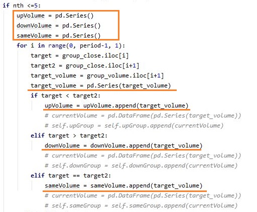 다음으로는 역시나 VR지수를 계산하기 위해서, 그냥 pandas Series에 sum()함수를 주는 것으로 일련의 합계를 구할 수 있도록 만들어 주도록합니다.