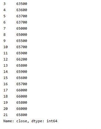 그래서 먼저 제대로 가지고 오는지 아닌지 일단 종가만이라도 제대로 나오고 있는지 여부를 알아보기 위해서 우선 print함수를 써서 만들어 보도록 합니다.