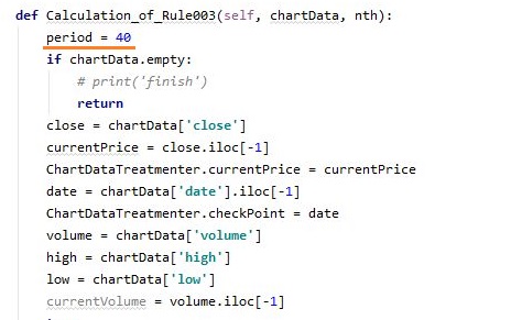그리고 나서 여기서 한번 제대로 period를 지정하기 위해서 우선 가장 긴 period로 예상이 되는 40 period부터 지정을 해 주도록 합니다.