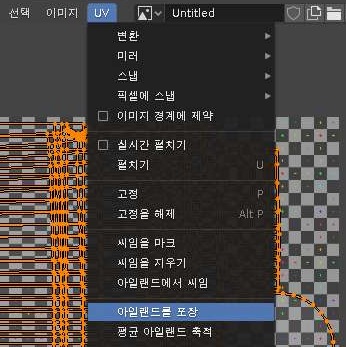 일단 이렇게 해서 정렬을 하기는 했는데, 무언가가 제 예상과는 다른 현상이 벌어진 것으로 생각이 됩니다. 우선은 각각의 아일랜드라고 해서 UV맵의 간격을 더 벌려 주도록 합니다.