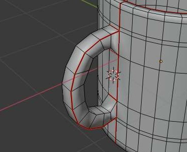 그래서 이번에는 머그컵의 손잡이를 위 스크린샷에서 볼 수 있는 것과 같이, 일단 옆면을 만들어 놓아서 한번 움직여 보도록 합니다.