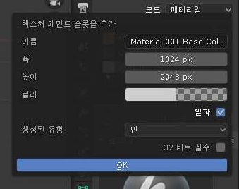 이렇게 해서 위 스크린샷에서 보이는 것처럼 일단 하나의 텍스쳐 페인트 슬롯을 추가시켜 주도록 합니다. 여기서 OK만 눌러주면 됩니다.