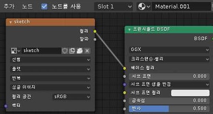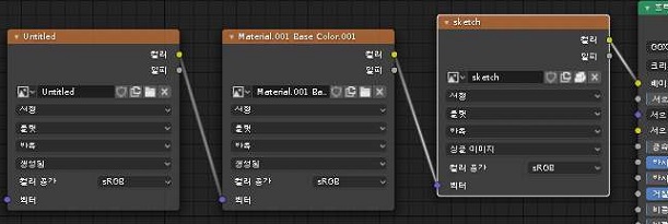이렇게 해서 위 스크린샷에서 보이는 것처럼 일단 한개의 이미지 텍스쳐 노드만을 연결해 보도록 합니다. 이제 이렇게 한 다음에 다음 작업을 하러 갑니다.