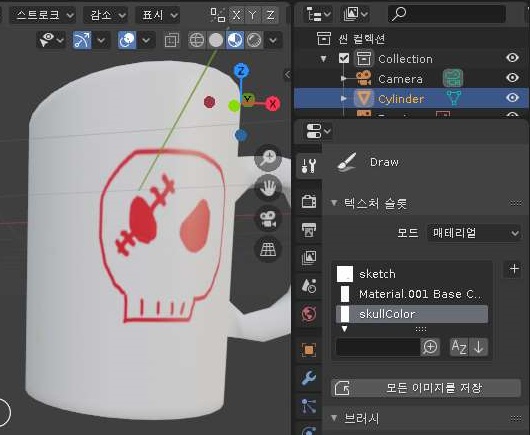 일단 기존의 텍스쳐 페인트 슬롯으로 돌아와서, 그냥 해골을 색칠하는 방법도 방법이라고 할 수 있기는 있습니다. 다만 이렇게 하는 것이 제가 100% 원하는 것도 아니기는 했습니다.