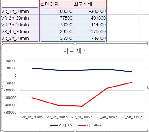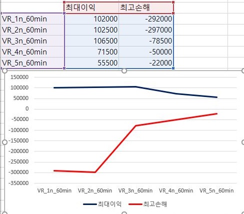 그리고 나서 다음으로 이익과 손해의 최대치에 대해서 한번 알아보았더니, 일단 여기서 하나 알 수 있는 것은 이익의 최대치는 그렇게 변하지않는데, 조건이 빡빡해 지면 질수록 손해의 최대치는 줄어든 다는 것 입니다.